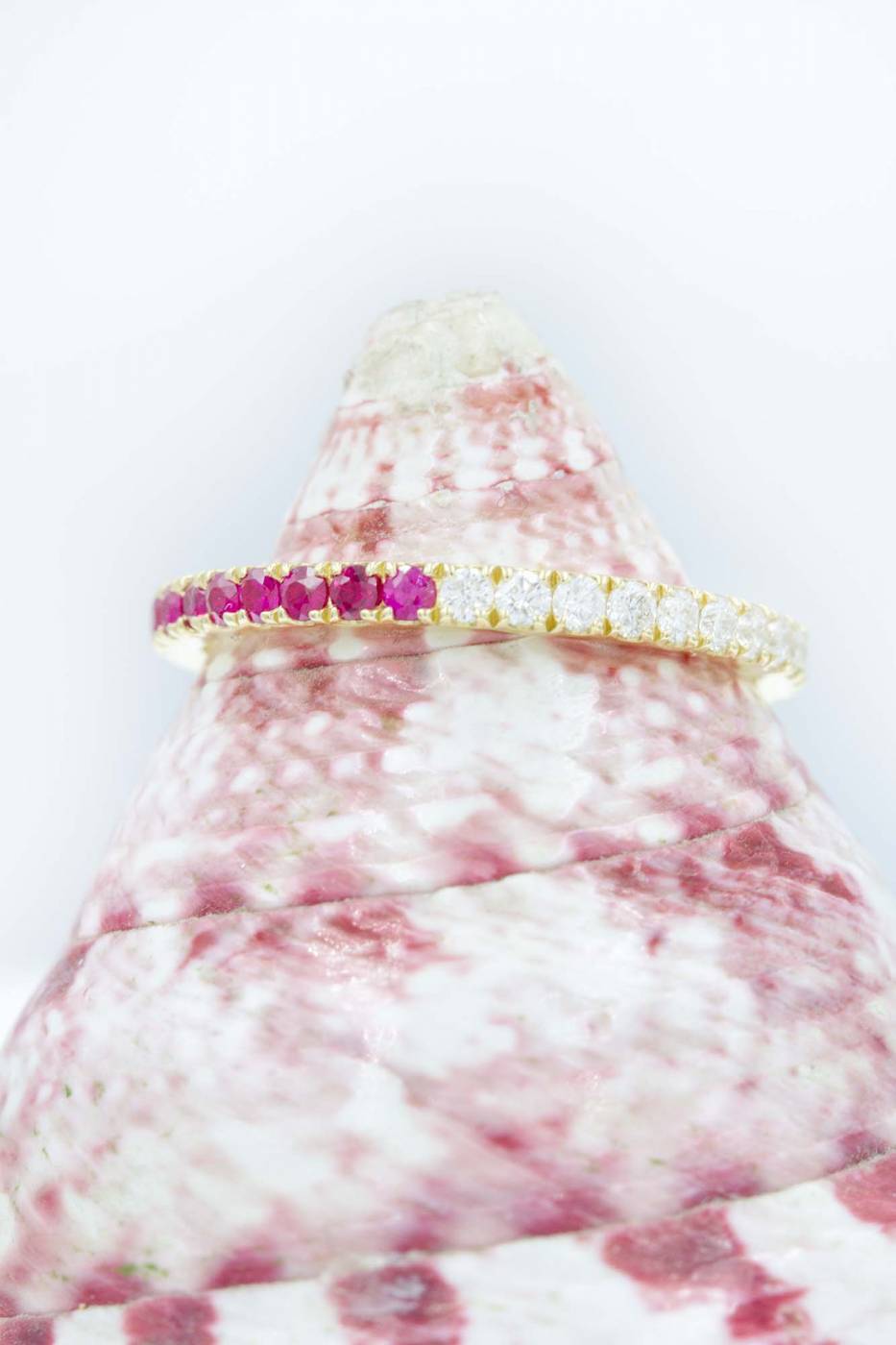 Yellow gold eternity ring with rubies and diamonds from the magnificent and unique collection of Pan Jewellery with its high and guaranteed quality.